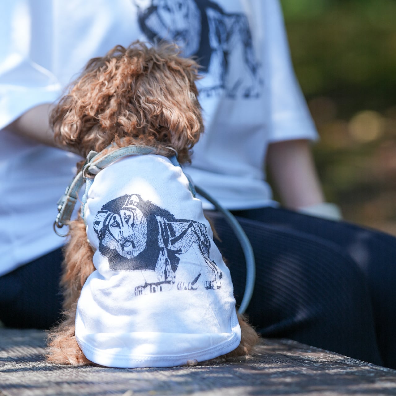 愛犬とおそろいでまとう、アートな一枚です。